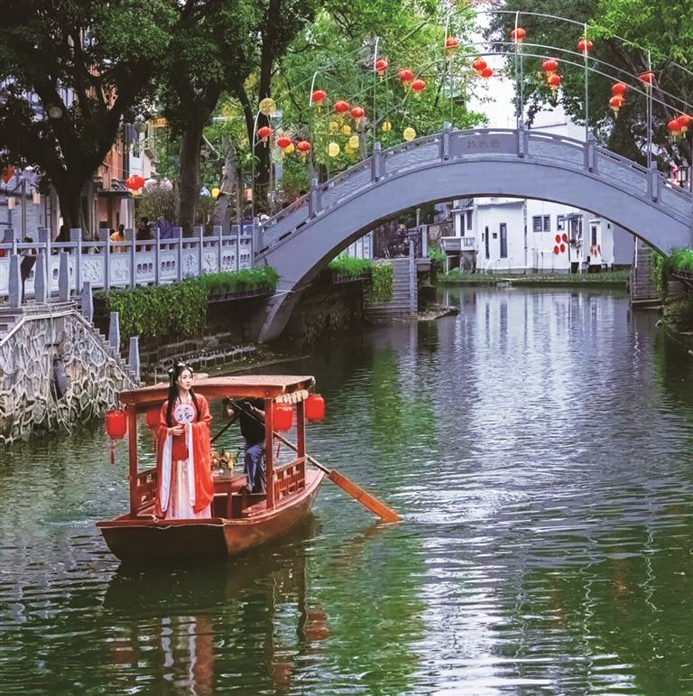 若想感受水乡慢生活,也文也武河边茶事不可错过。临河而坐,听河水潺潺、享微风拂面,品一杯新中式特色茶饮,瞬间卸下疲惫。国庆期间,从这里的水乡游船码头搭乘乌篷船,沿三丫涌驶向兴隆街,三角梅绽放两岸,白鹭翩跹而过,黛瓦白墙与多彩墙绘倒映水中,宛如穿行于水墨画间,给亲子家庭带来独特的水乡漫游体验。